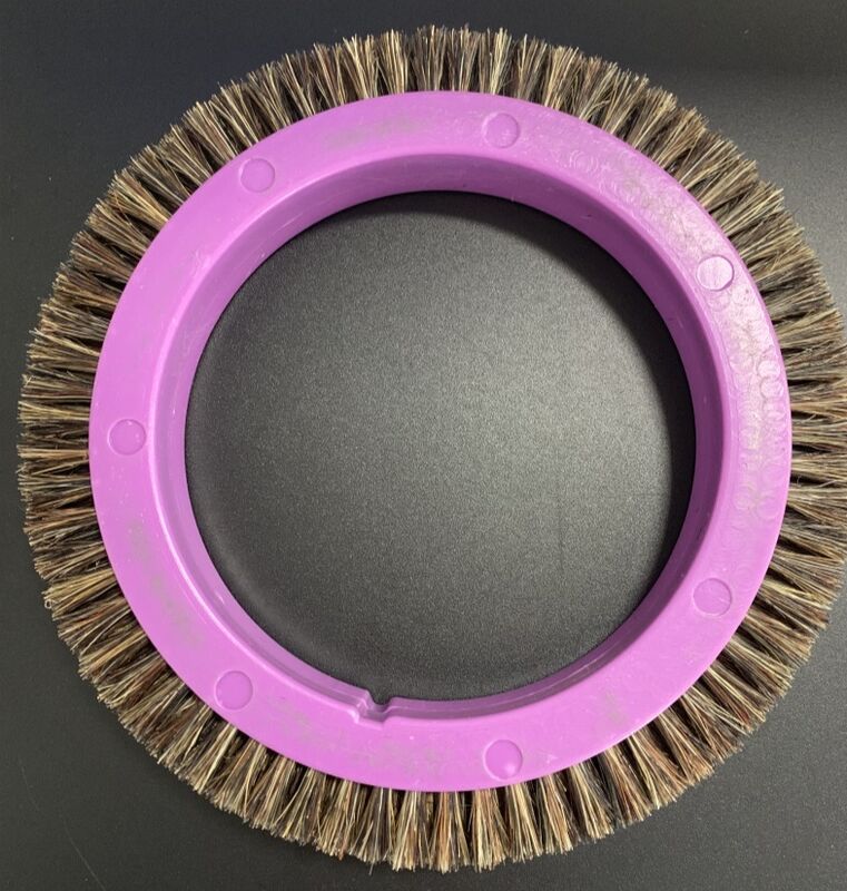 1. عجلة فرشاة شعيرات الخنزير: شعيرات الخنزير قوية ومرنة، ولا تتشوه بسهولة أثناء الاستخدام، ولها مقاومة جيدة للرطوبة، ولا تتأثر بالحرارة والبرودة. يمكنها أن تضغط القماش بفعالية على لوحة إبرة ماكينة الشد، وهي لطيفة نسبيًا على سطح القماش، مما يجعل من غير المرجح أن تتلف القماش.